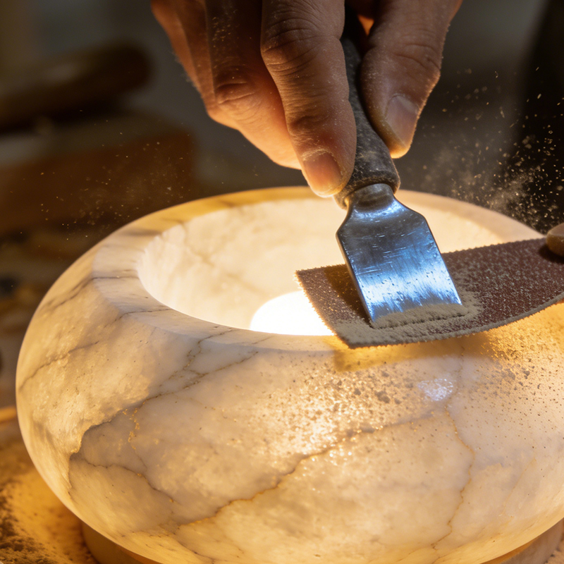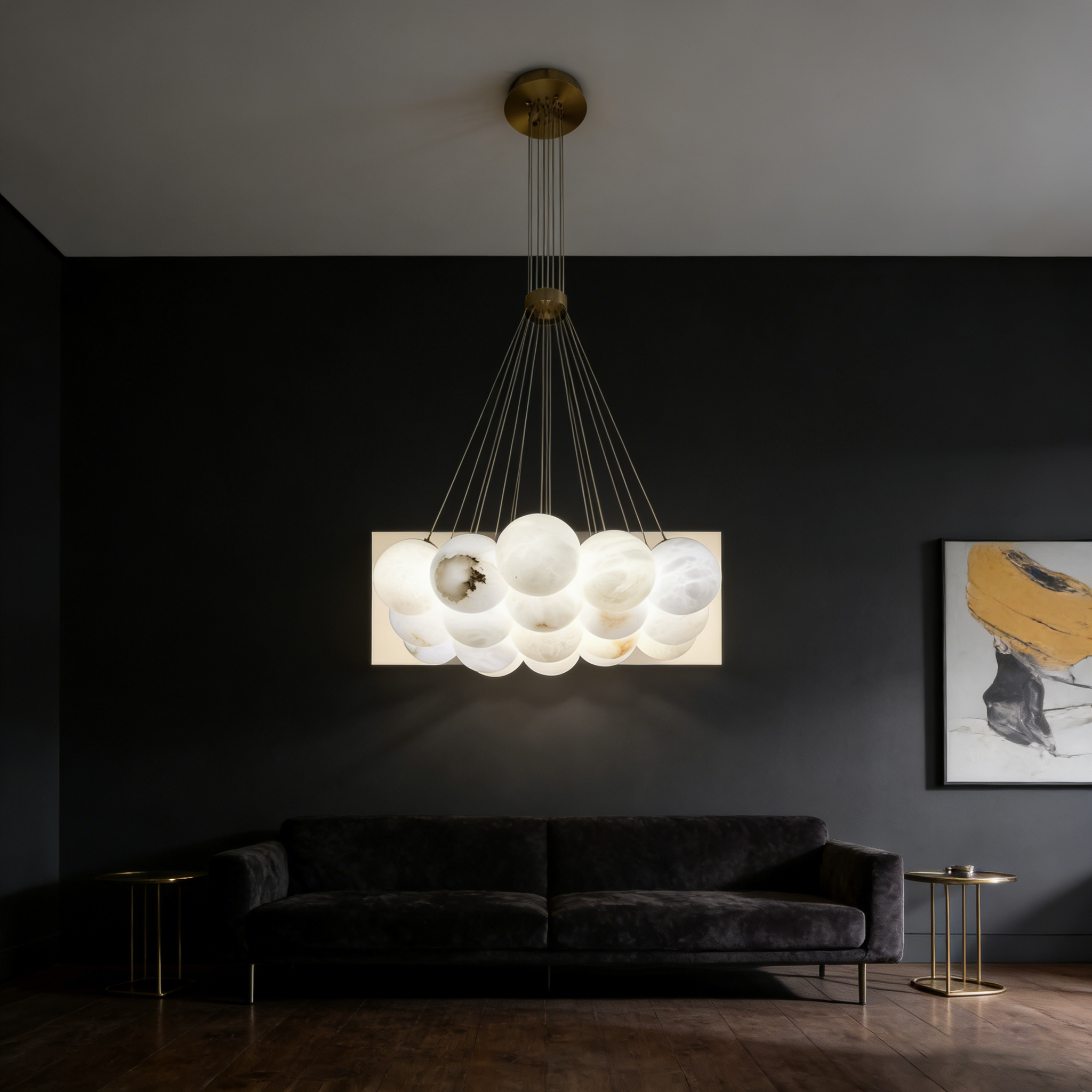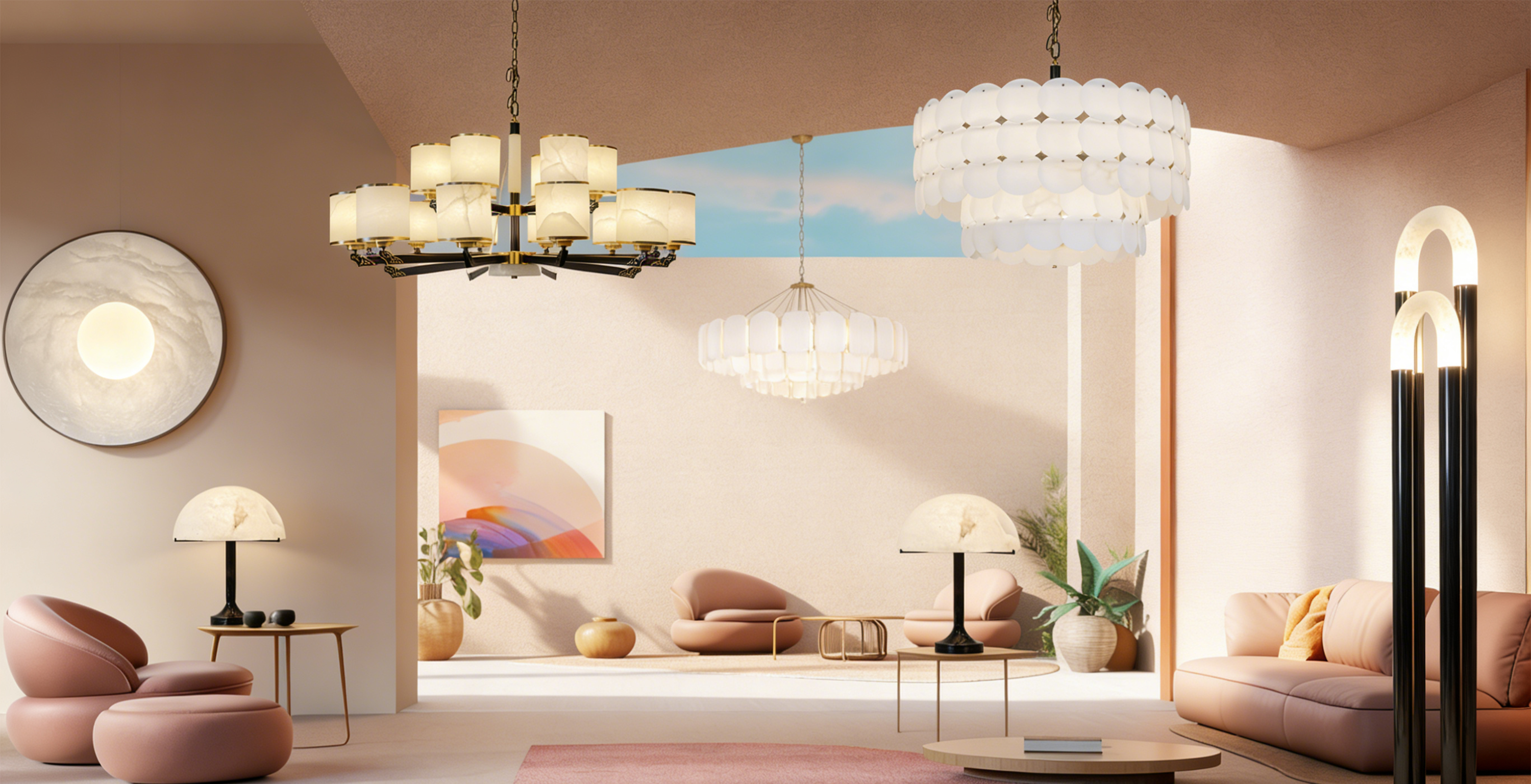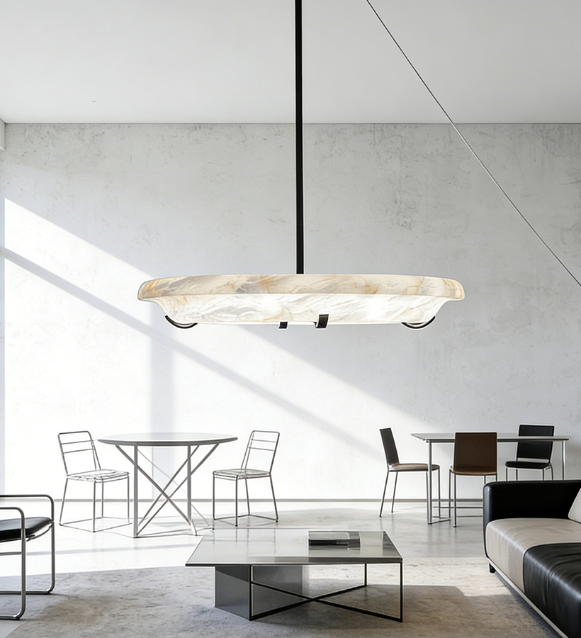 Crafted from natural Spanish alabaster, handcrafted into a lotus-leaf shape. The thin stone diffuses soft warm light, creating a relaxed, luxurious atmosphere for dining and living rooms, blending light and stone in perfect harmony.